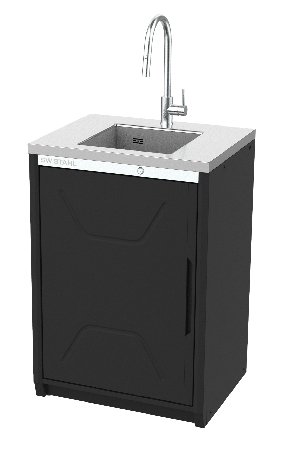 Unterschrank mit Edelstahlspüle und Arbeitsplatte Edelstahl