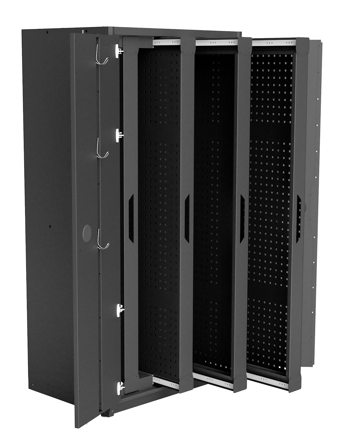 4 Schwerlast-Auszüge mit beidseitiger Lochwand im 38 mm Raster
